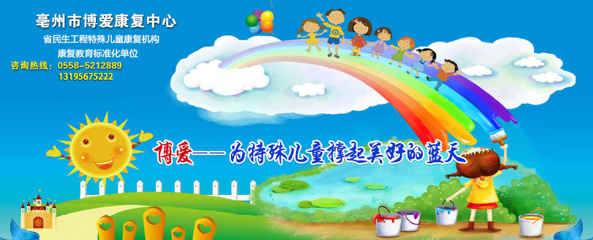 亳州市博爱康复中心是经亳州市残联,亳州市民政局自2012年2月8日批准成立的,是安徽省人民政府贫困自闭症儿童民生工程康复训练定点单位。本中心拥有先进的经络导平康复技术,该项技术不吃药不打针,无任何副作用。一般自闭症儿童到本康复中心康复训练一周即可看到康复效果。目前,我中心有41名教职工,在训自闭症儿童156名,康复教育训练场地3000多平米,我中心位于亳州市谯城区火车站建安路509号(火车站红绿灯北500米路西) ,欢迎广大自闭症儿童家长及亲属来我中心考察。